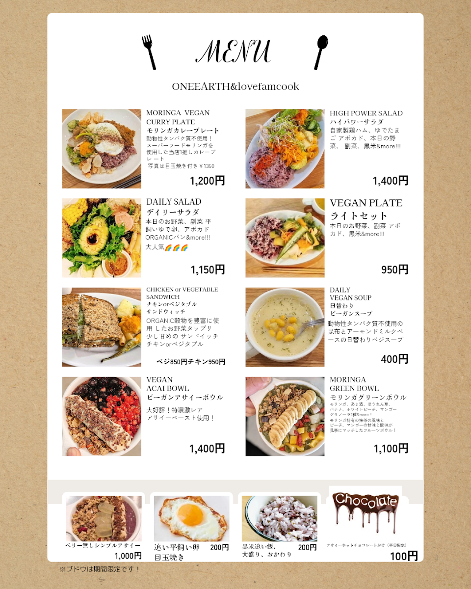 Welcome to ONE EARTH&lovefamcook, a charming vegan café nestled in the heart of Hiroshima. This delightful eatery is more than just a café; it’s a sanctuary for those seeking wholesome, plant-based meals that are both nourishing and indulgent. Located at 314 PALヒル B1F, Mikawacho, Naka Ward, Hiroshima, the warm ambiance and inviting décor set the stage for an unforgettable dining experience.